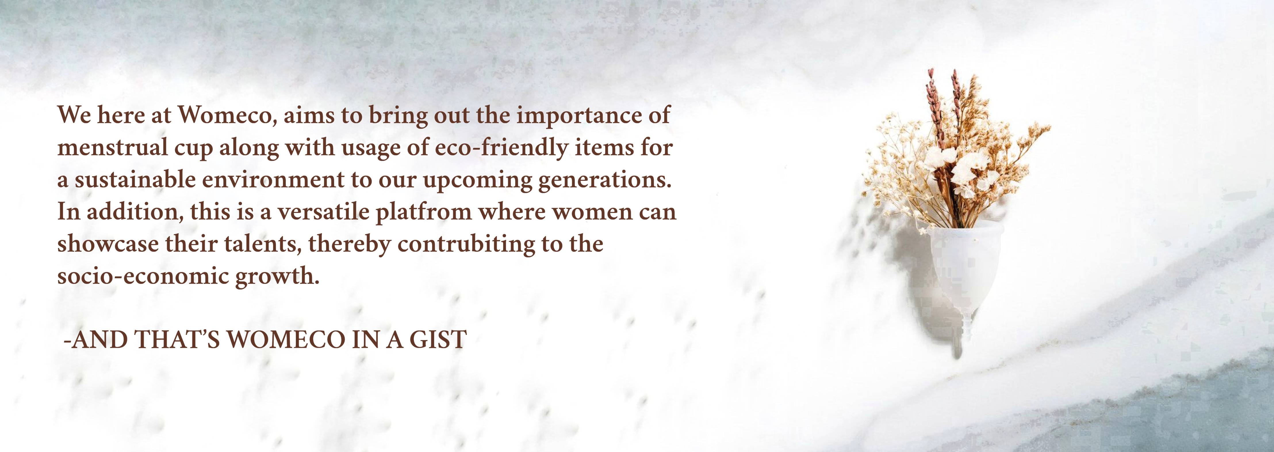 Womeco encourages women to be self reliant, independent,have self esteem and boost their confidence to face challenges by conducting wide variety of events.They can participate host,shop and sell their eco friendly products through us.We raise them both economically and socially.